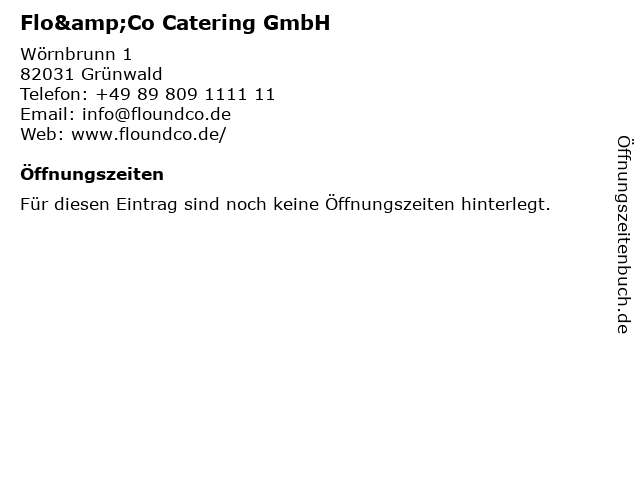 | Öffnungszeiten Flo&Co Catering GmbH in Grünwald anzeigen | |