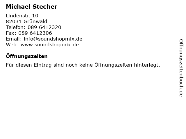| Öffnungszeiten Michael Stecher in Grünwald anzeigen | |