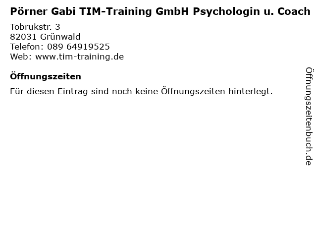 | Pörner Gabi TIM-Training GmbH Psychologin u. Coach anrufen | |