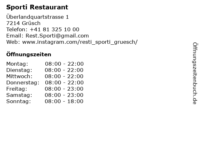 | Öffnungszeiten Sporti Restaurant in Grüsch anzeigen | |