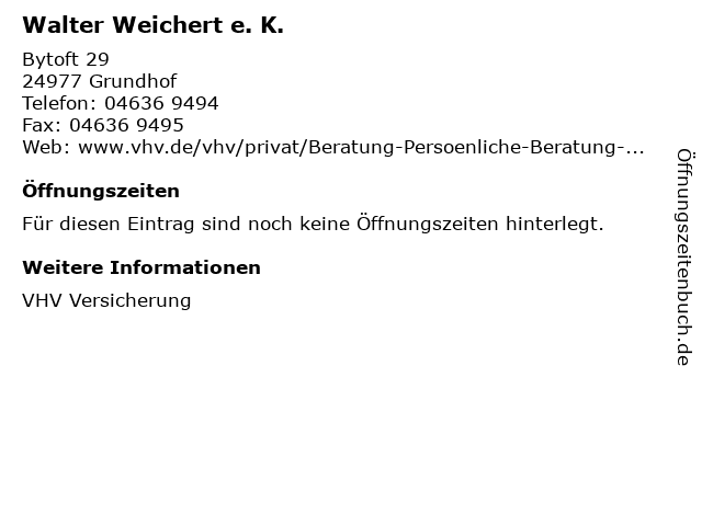 | Öffnungszeiten Walter Weichert e. K. in Grundhof anzeigen | |