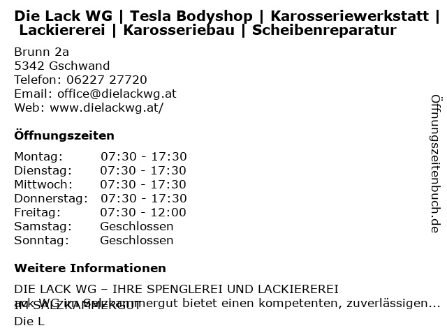Branchen & Suchbegriffe zu Die Lack WG | Tesla Bodyshop | Karosseriewerkstatt | Lackiererei | Karosseriebau | Scheibenreparatur:bodyshop, karosseriebau, karosseriewerkstatt, lack, lackiererei, scheibenreparatur, tesla, wg |