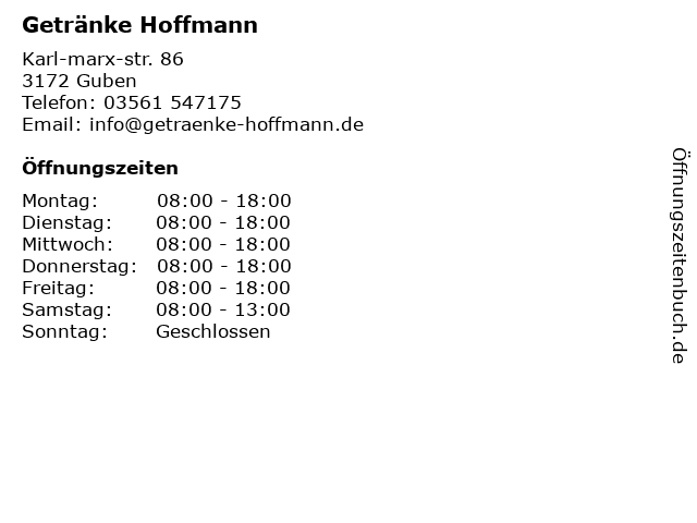 | Öffnungszeiten Getränke Hoffmann in Guben anzeigen | |
