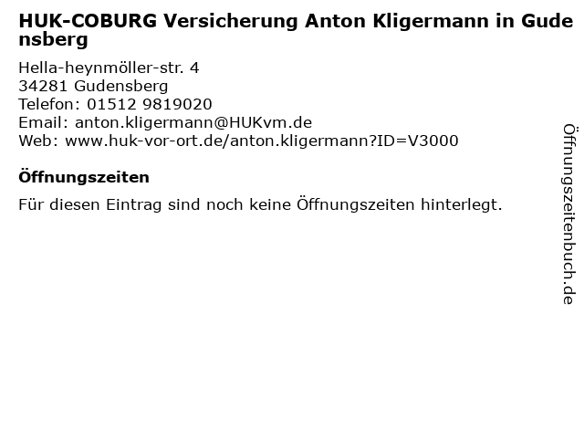 | HUK-COBURG Versicherung Anton Kligermann in Gudensberg anrufen | |