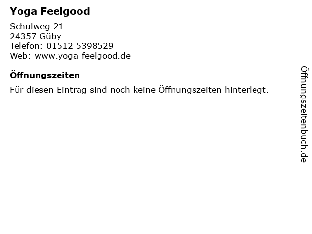 | Öffnungszeiten Yoga Feelgood in Güby anzeigen | |