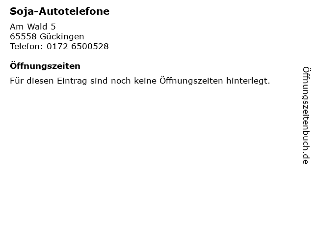| Öffnungszeiten Soja-Autotelefone in Gückingen anzeigen | |