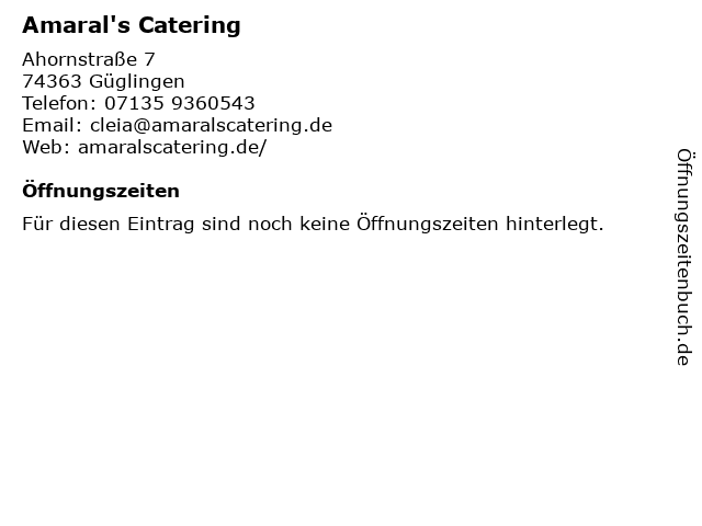 | Öffnungszeiten Amaral's Catering in Güglingen anzeigen | |