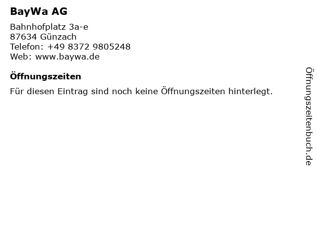 | Öffnungszeiten BayWa AG in Günzach anzeigen | |
