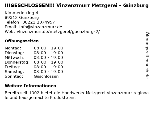 Branchen & Suchbegriffe zu !!!GESCHLOSSEN!!! Vinzenzmurr Metzgerei - Günzburg:!!!geschlossen!!!, delikatessenhandel, fast-food-restaurant, käseladen, metzgerei, vinzenzmurr |