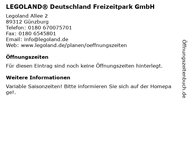 | LEGOLAND® Deutschland Freizeitpark GmbH anrufen | |