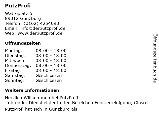 | Öffnungszeiten PutzProfi in Günzburg anzeigen | |