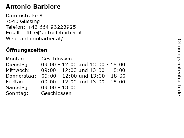 | Öffnungszeiten Antonio Barbiere in Güssing anzeigen | |