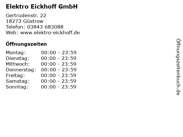 | Öffnungszeiten Elektro Eickhoff GmbH in Güstrow anzeigen | |