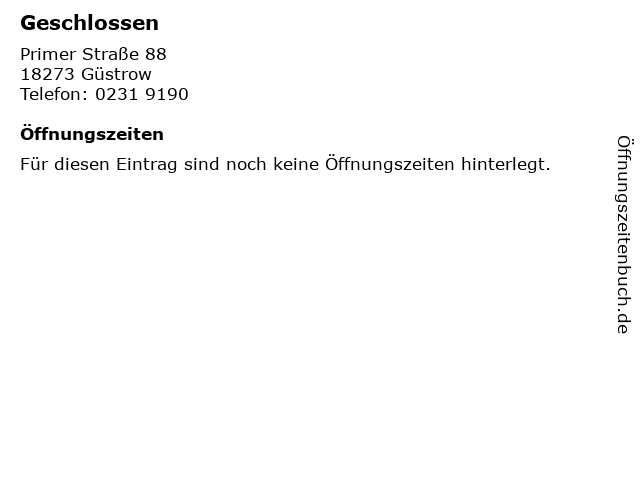| Telefonnummer Geschlossen in Güstrow (0231 9190) anrufen | |