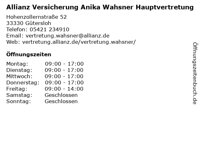 1 Allianz Versicherung - Simone Gramsch, Hauptvertretung (Entfernung: 0,00 km) Hohenzollernstraße 52, 33330 Gütersloh 3 AXA Versicherung - Hauptvertretung Adriane Pruske (Entfernung: 3,33 km) Carl-Miele-Str. 207, 33335 Gütersloh 4 6 AXA Versicherung - Hauptvertretung Alvaro Giovannelli (Entfernung: 12,08 km) Im Ennebutt 2, 33397 Rietberg |