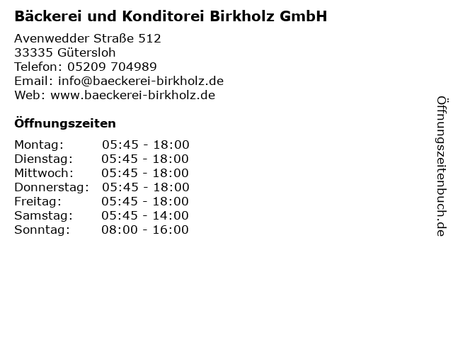 5 Bäckerei und Konditorei Birkholz GmbH (Entfernung: 8,58 km) Neuenkirchener Straße 48a, 33332 Gütersloh 6 |