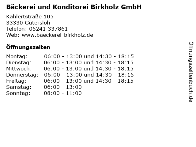 3 5 Bäckerei und Konditorei Birkholz GmbH (Entfernung: 2,54 km) Neuenkirchener Straße 48a, 33332 Gütersloh 6 |