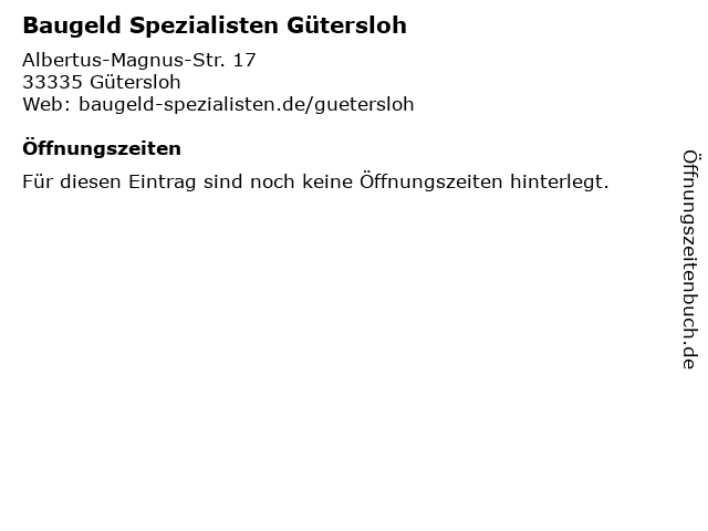 | Öffnungszeiten Baugeld Spezialisten Gütersloh in Gütersloh anzeigen | |
