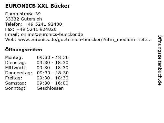 | Öffnungszeiten EURONICS XXL Bücker in Gütersloh anzeigen | |