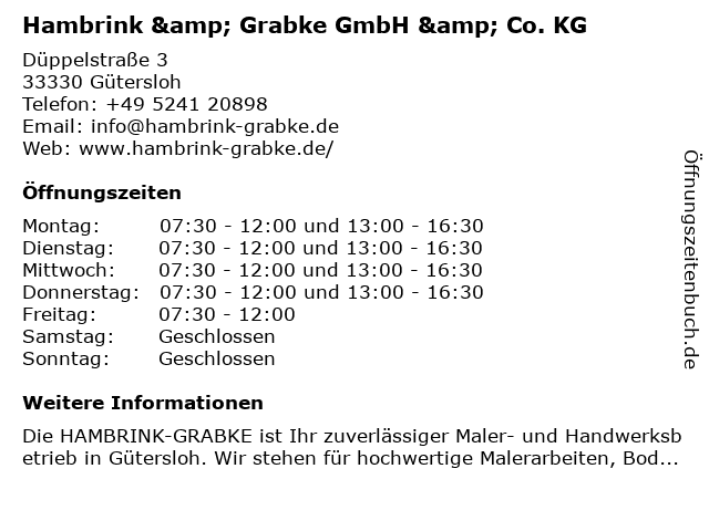 Branchen & Suchbegriffe zu Hambrink & Grabke GmbH & Co. KG:bodenbelagsarbeiten, farbberatung & design, gardinen montageservice, gardinen- und sonnenschutzlösungen, gardinen-montage & sonnenschutz-beratung, gardinen-montage und sonnenschutzlösungen, grabke, hambrink, hambrink-grabke gütersloh, ihr maler- und handwerksbetrieb vor ort, maler in gütersloh, malerarbeiten & lackierung, malerarbeiten gütersloh, malerarbeiten in gütersloh - innen & außen, malerbetrieb gütersloh, malerfachbetrieb nordrhein-westfalen, parkett & laminat verlegen, polster- und dekorationsarbeiten, polsterarbeiten & möbelrestauration, professionelle malerarbeiten für privatkunden, sonnenschutz & rollladen, tapezierer und lackierer vor ort |