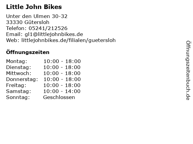 | Öffnungszeiten Little John Bikes in Gütersloh anzeigen | |
