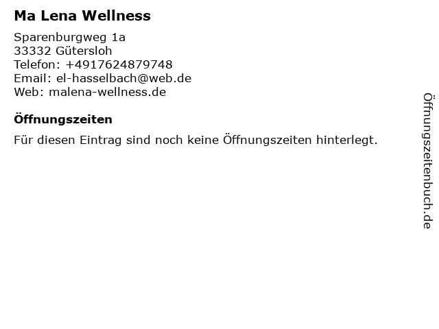 | Öffnungszeiten Ma Lena Wellness in Gütersloh anzeigen | |