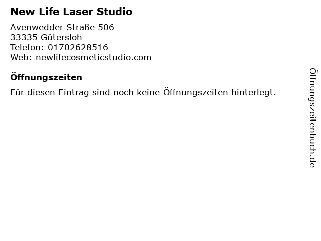 | Öffnungszeiten New Life Laser Studio in Gütersloh anzeigen | |