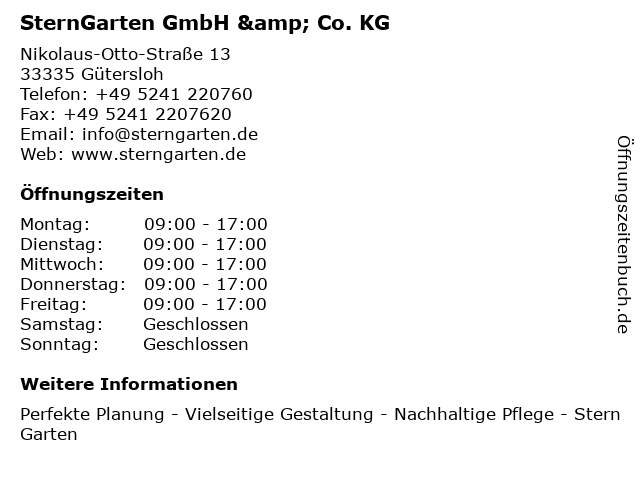 | Öffnungszeiten SternGarten GmbH & Co. KG in Gütersloh anzeigen | |