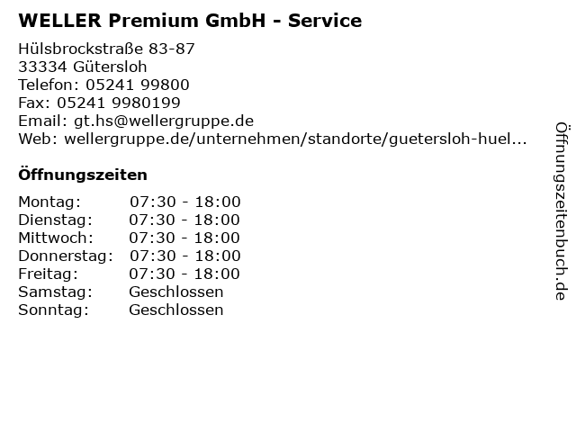 4 WELLER Performance GmbH & Co. KG - Teile & Zubehör (Entfernung: 0,87 km) Berliner Str. 247, 33330 Gütersloh 5 WELLER Performance GmbH & Co. KG - Verkauf (Entfernung: 0,89 km) Berliner Straße 247, 33330 Gütersloh 6 o2 Premium Partner Gütersloh 1 ATC Vertriebs GmbH (Entfernung: 2,25 km) Strengerstr. 16-18, 33330 Gütersloh |