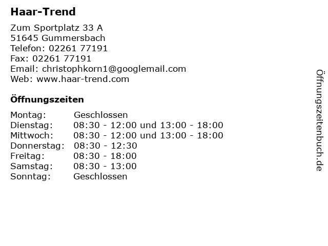 | Öffnungszeiten Haar-Trend in Gummersbach anzeigen | |