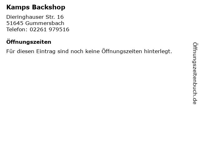 | Telefonnummer Kamps Backshop in Gummersbach (02261 979516) anrufen | |