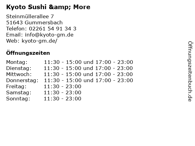 | Öffnungszeiten Kyoto Sushi & More in Gummersbach anzeigen | |