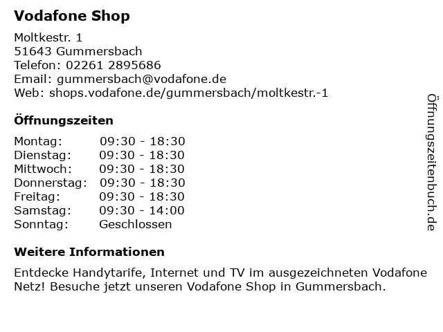 | Öffnungszeiten Vodafone Shop in Gummersbach anzeigen | |