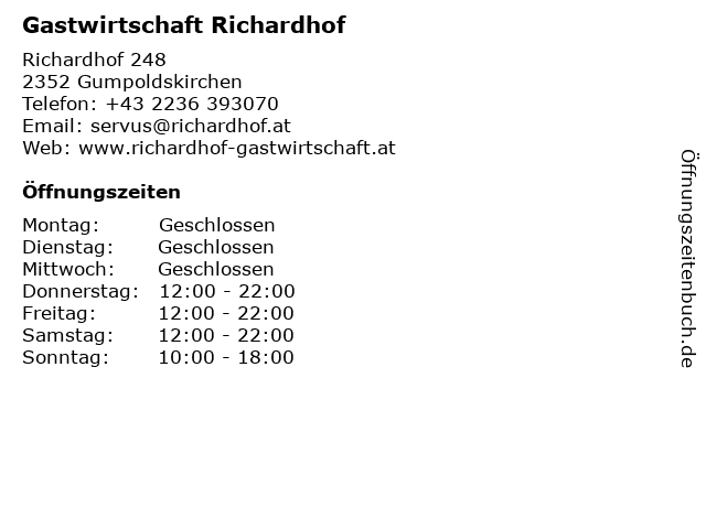Branchen & Suchbegriffe zu Gastwirtschaft Richardhof:gasthof, gastwirtschaft, getränke, richardhof, service, speisen |