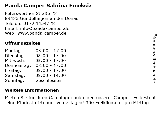 Branchen & Suchbegriffe zu Panda Camper Sabrina Emeksiz:camper, emeksiz, panda, sabrina |