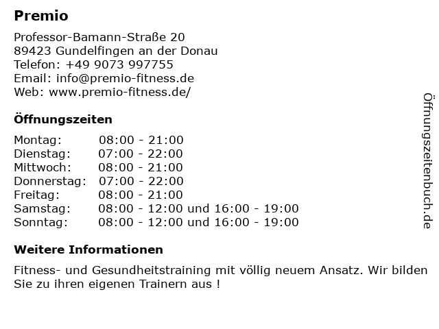 | Öffnungszeiten Premio in Gundelfingen an der Donau anzeigen | |