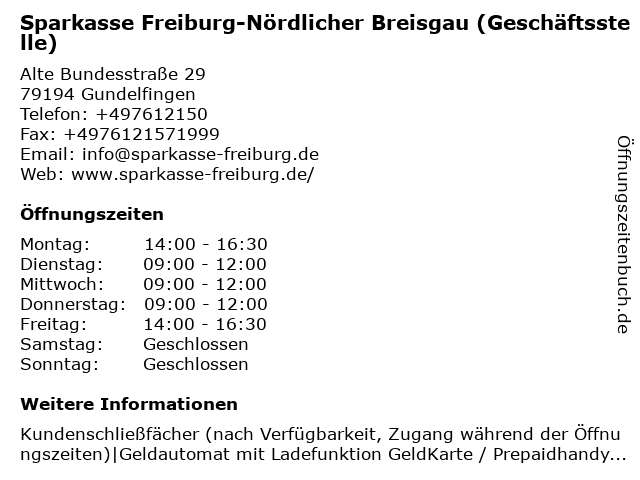 Branchen & Suchbegriffe zu Sparkasse Freiburg-Nördlicher Breisgau (Filiale):breisgau, nördlicher, sparkasse |