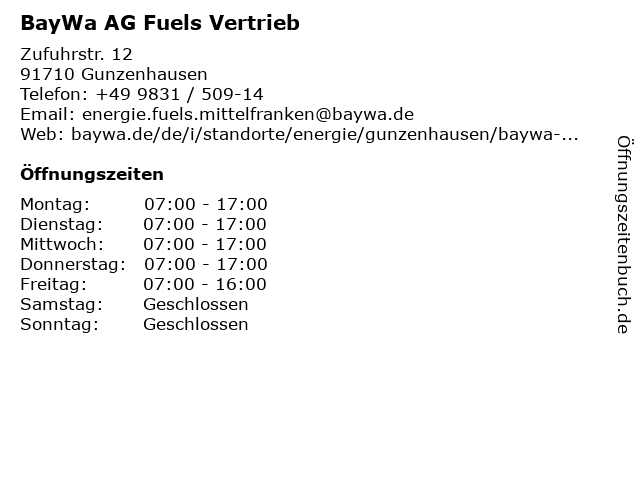 3 BayWa Bau- & Gartenmärkte GmbH & Co. KG Gunzenhausen (Entfernung: 1,79 km) Weißenburger Straße 110, 91710 Gunzenhausen 6 |