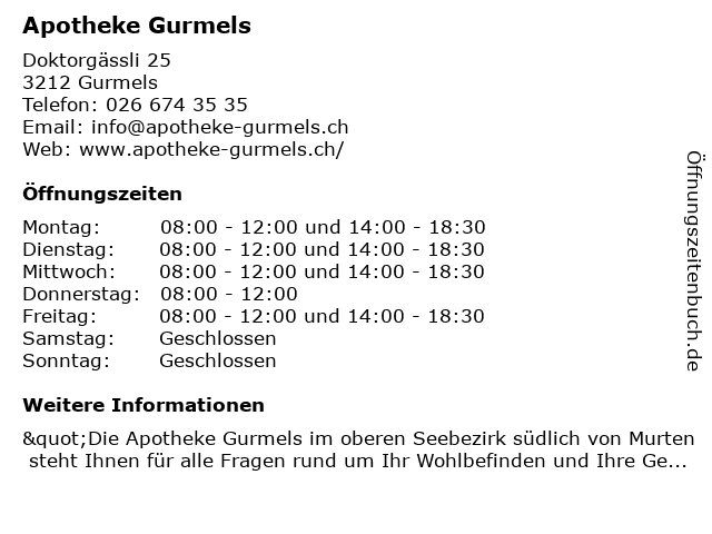 Öffnungszeiten Apotheke Gurmels
