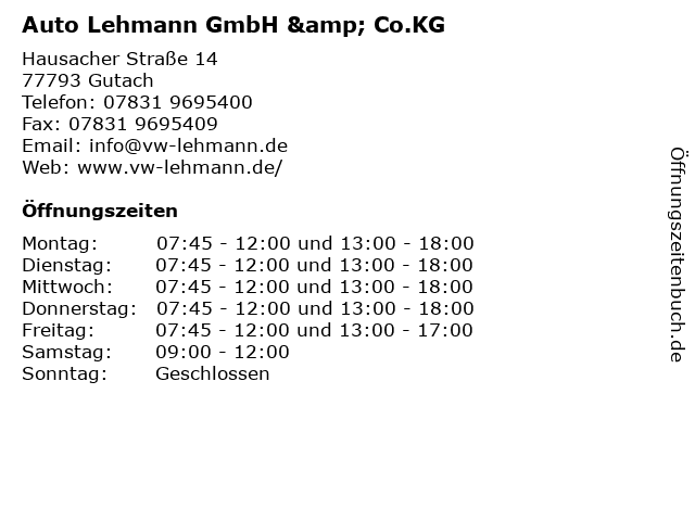 | Öffnungszeiten Auto Lehmann GmbH & Co.KG in Gutach anzeigen | |