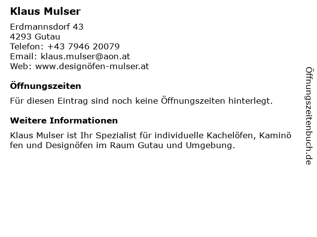 | Öffnungszeiten Klaus Mulser in Gutau anzeigen | |