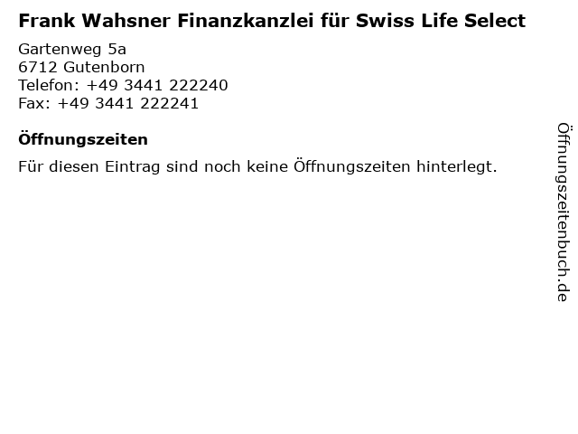| Frank Wahsner Finanzkanzlei für Swiss Life Select anrufen | |