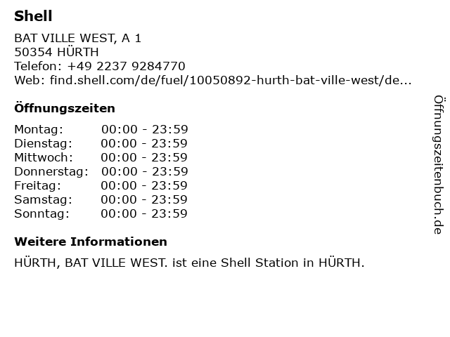 Telefonnummer Shell in HÜRTH (+49 2237 9284770) anrufen | |