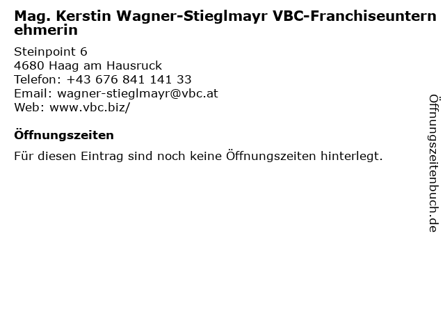 | Mag. Kerstin Wagner-Stieglmayr VBC-Franchiseunternehmerin anrufen | |