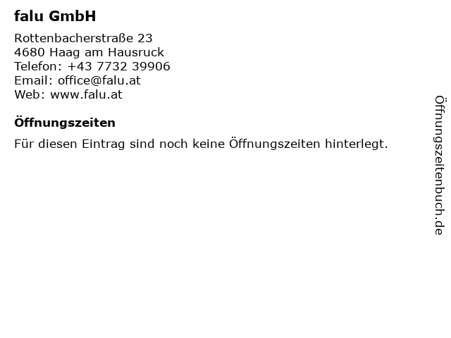 | Öffnungszeiten falu GmbH in Haag am Hausruck anzeigen | |