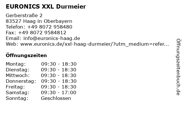 Öffnungszeiten EURONICS XXL Durmeier in Haag in Oberbayern anzeigen
