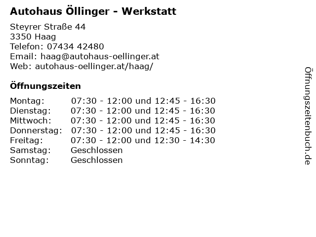 | Öffnungszeiten Autohaus Öllinger - Werkstatt in Haag anzeigen | |