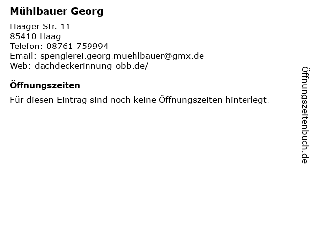 | Öffnungszeiten Mühlbauer Georg in Haag anzeigen | |