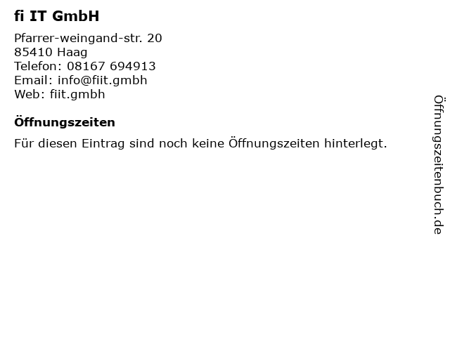 | Öffnungszeiten fi IT GmbH in Haag anzeigen | |