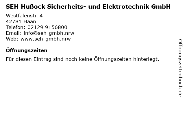 | SEH Hußock Sicherheits- und Elektrotechnik GmbH anrufen | |